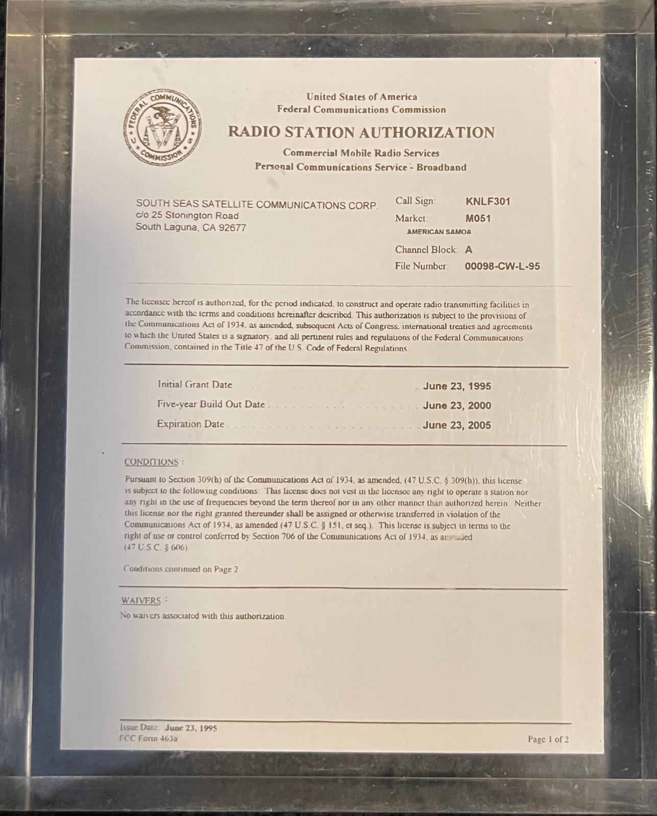 Unaware at the time of these ancestral footprints beneath me, I was leading a communications enterprise linking islands through the sky — the FCC issued the company I founded, South Seas Satellite Communications license a PCS license on June 23, 1995, the very anniversary of the Battle of Springfield.