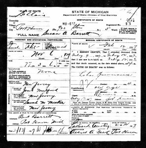 Susan A. Barrett Mulford Death Certificate names Jacob Mulford as Father and Susan Meeker as Mother 44471_354890-03256